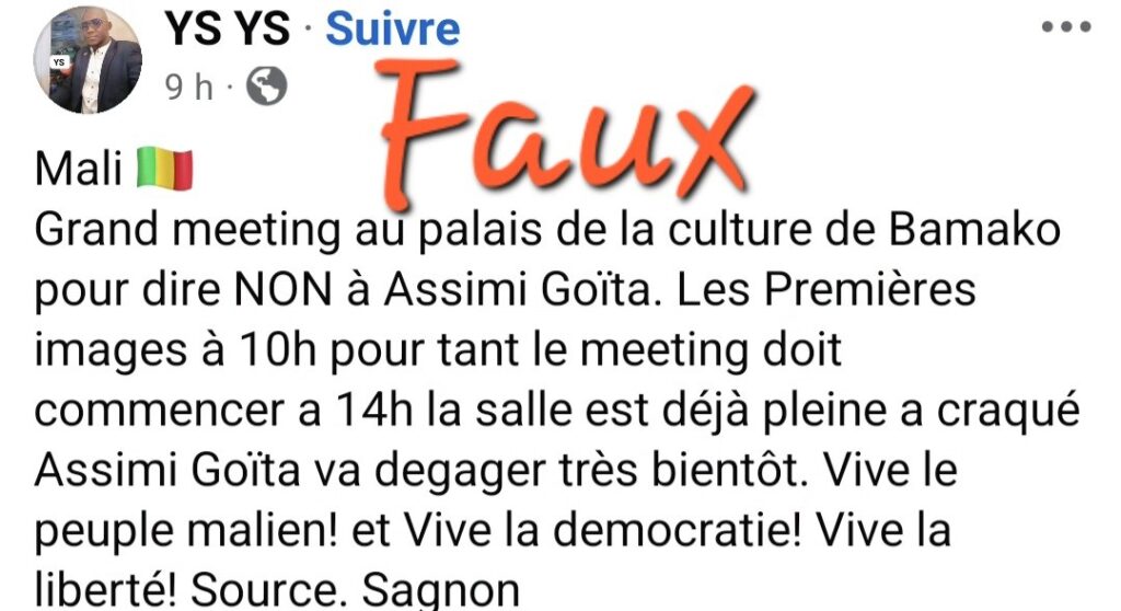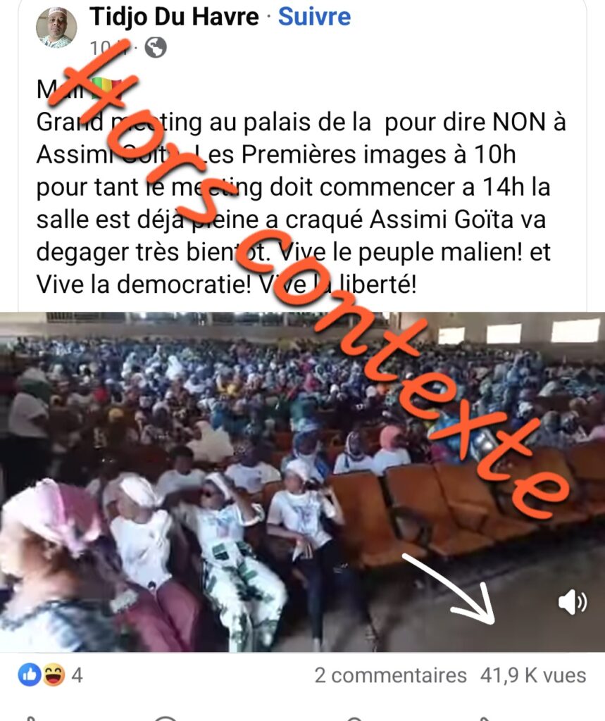 De ce fait, il est clair que cette vidéo est utilisée hors de son contexte. Malgré la forte mobilisation devant le palais de la culture ce samedi, il s’agissait d’une vidéo tournée à Sikasso.