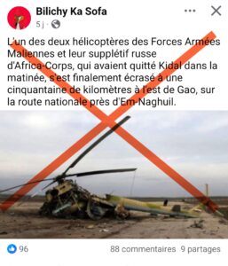 Une publication Facebook affirme qu’un hélicoptère de l’armée malienne se serait écrasé près de Gao, image à l’appui. Pourtant, après...